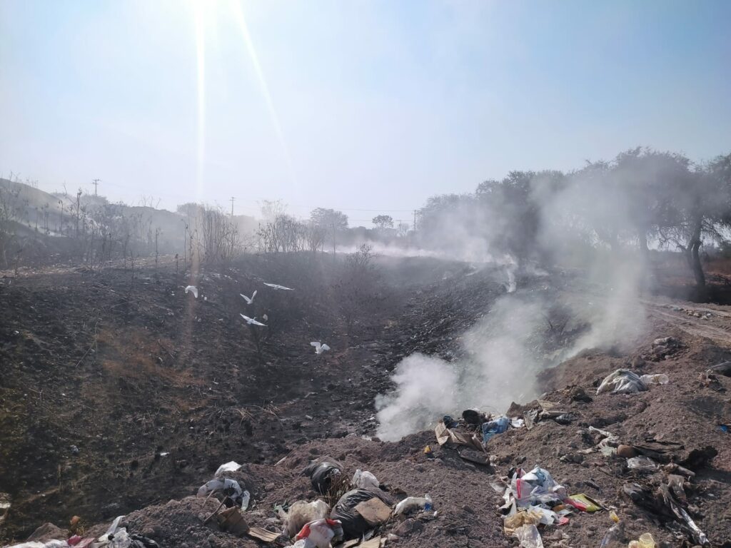 Cuitzeo, Michoacán, 20 de mayo de 2023.- Tras una semana de que se reportara un incendio en el vertedero de basura del municipio de Cuitzeo, autoridades estatales de Protección Civil, y de medio ambiente del estado, así como municipales, suman esfuerzos para mitigar y controlar las fumarolas que persisten desde el sábado pasado.