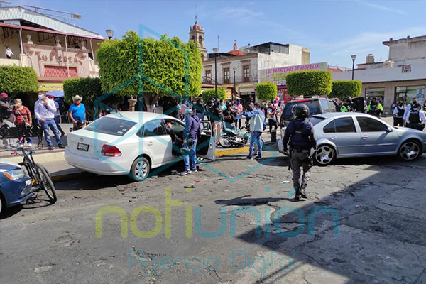 Morelia, Michoacán a 22 de febrero del 2021.- La mañana de este lunes se registró un accidente vehicular entre 4 vehículos frente a la plaza de San Juan, lo cual provocó caos vial.
