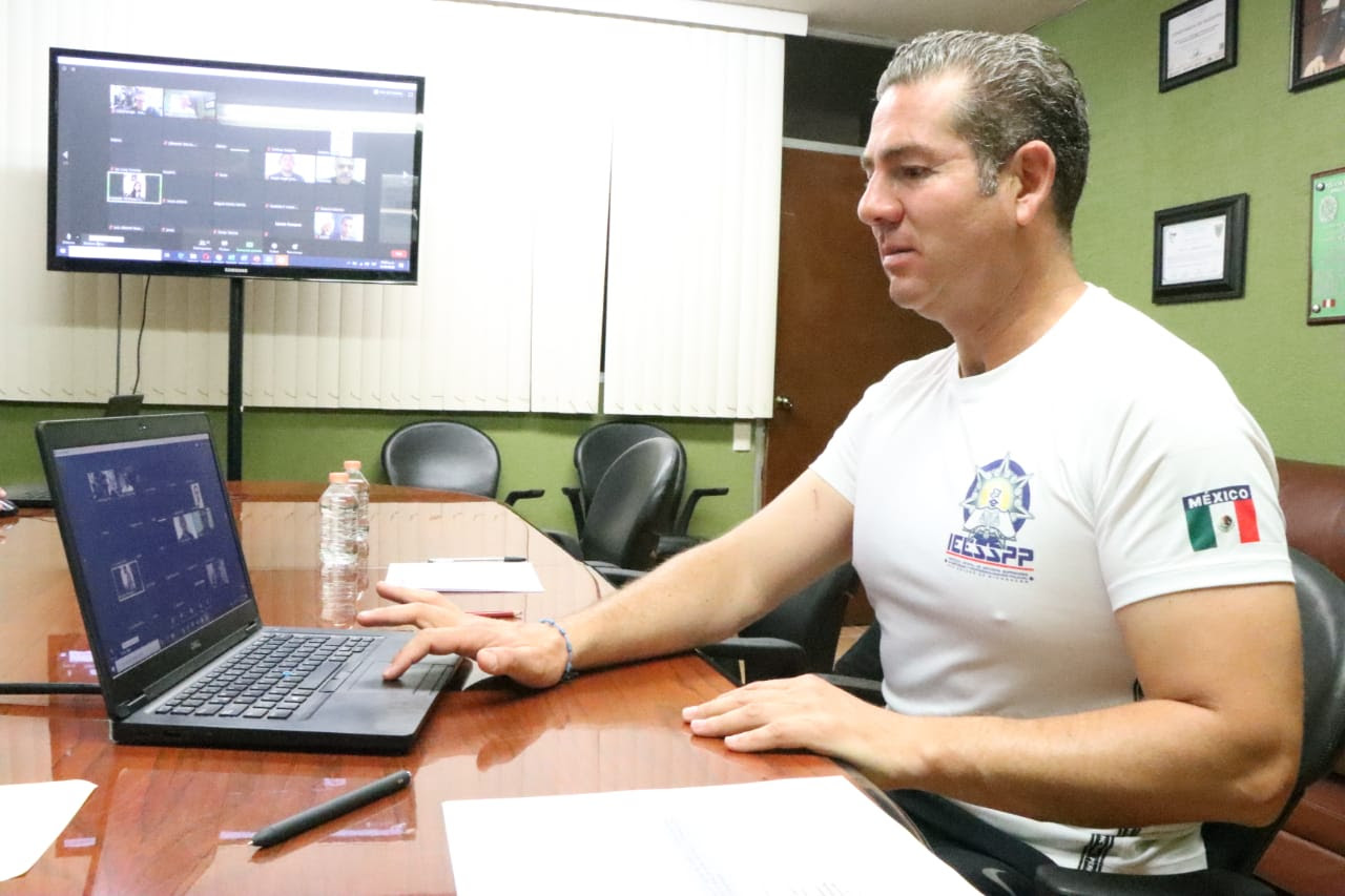 En reunión con la estructura orgánica del instituto, el comisario J. Antonio Bernal Bustamante, director general del IEESSPP, revisó la ruta crítica en la implementación de una plataforma educativa policial, la cual se adapta a las necesidades operativas, brindando una opción más de capacitación continua y especializada.