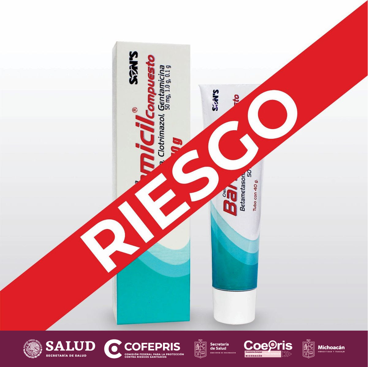 Morelia, Michoacán, 11 de julio de 2023.- La Comisión Federal para la Protección contra Riesgos Sanitarios (Cofepris), a través de la Secretaría de Salud de Michoacán (SSM), alerta a la población sobre el uso indiscriminado de Barmicil con la combinación de betametasona, gentamicina y clotrimazol, de uso tópico en presentación crema.