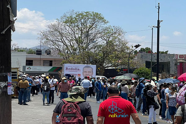 Morelia, Michoacán a 07 de mayo del 2021.- La mañana de este viernes llamó la atención de los ciudadanos un anuncio político que se encontraba colocado en uno de los accesos principales para la aplicación de la vacuna vs covid-19 en el Venustiano Carranza.