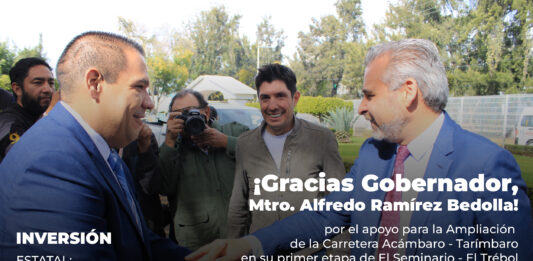 El Gobierno de Michoacán invierte más de 18 mdp en la ampliación de la carretera Acámbaro – Tarímbaro Tarímbaro, Michoacán, 18 de abril de 2023.- Tras el arranque de la obra de la ampliación a cuatro carriles de la carretera federal número 120, en el tramo de El Seminario al Fraccionamiento El Trébol, el alcalde … Sigue leyendo Alfredo Ramírez Bedolla, un Gobernador Municipalista: Bladimir González