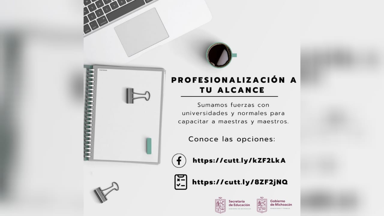 Morelia, Michoacán, 9 de agosto del 2022.- La Secretaría de Educación del Estado (SEE) amplía la oferta y opciones para la profesionalización de los docentes michoacanos con más de 20 planes académicos, los que se ofertarán a un menor costo, derivado del reciente convenio con 10 universidades y escuelas normales de la entidad.