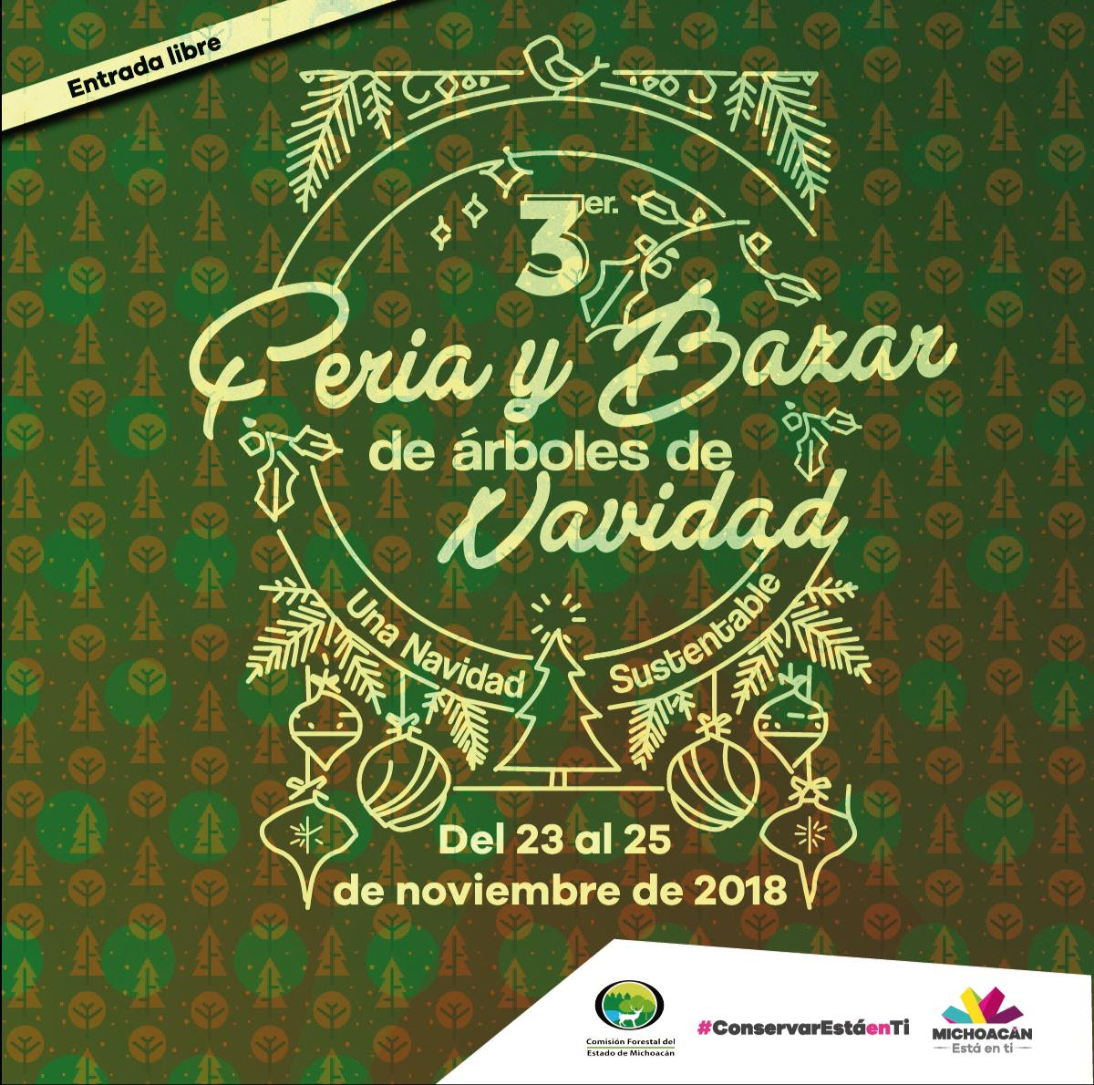 El Gobierno de Michoacán, a través de la Comisión Forestal del Estado (Cofom), anuncia su 3er Feria y Bazar de Árboles de Navidad, la cual se realizará este fin de semana en los Jardines de la dependencia estatal, ubicada en la calle Justo Mendoza Lote 11, en el Bosque Cuauhtémoc del Centro Histórico de la capital michoacana.