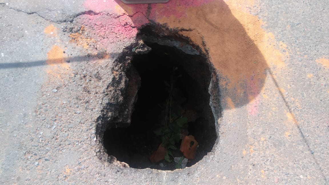Mientras que la administración municipal que encabeza Raúl Morón Orozco comenzó a reparar las maltratadas calles de Morelia con trabajos integrales de bacheo, en la Av Camelinas se abrió un socavón de al menos 50 centímetros de diámetro y poco más de un metro de profundidad.