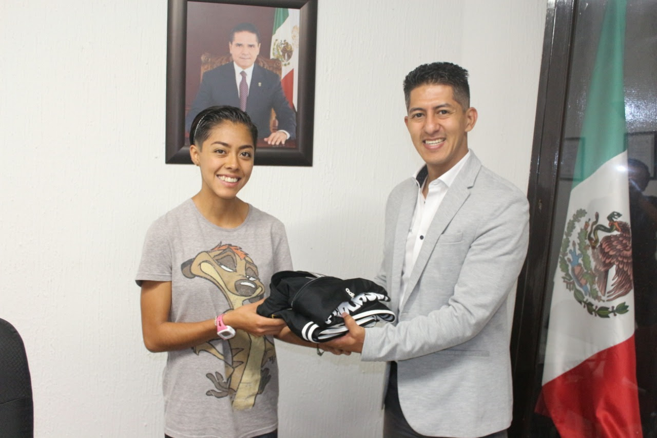 Díaz Acevedo, deseó el mayor de los éxitos a la joven deportista, además de hacerle entrega de su pants distintivo como atleta élite de Michoacán.