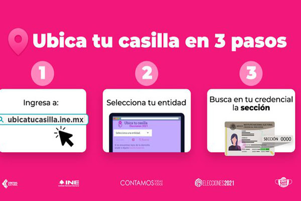 El Instituto Nacional Electoral (INE) cuenta con una plataforma digital https://ubicatucasilla.ine.mx/, la cual tiene como objetivo que todos los ciudadanos tengan la información correcta y precisa sobre el lugar donde se encontrará la casilla que les corresponde para poder participar en el ejercicio democrático este próximo 06 de junio del 2021.