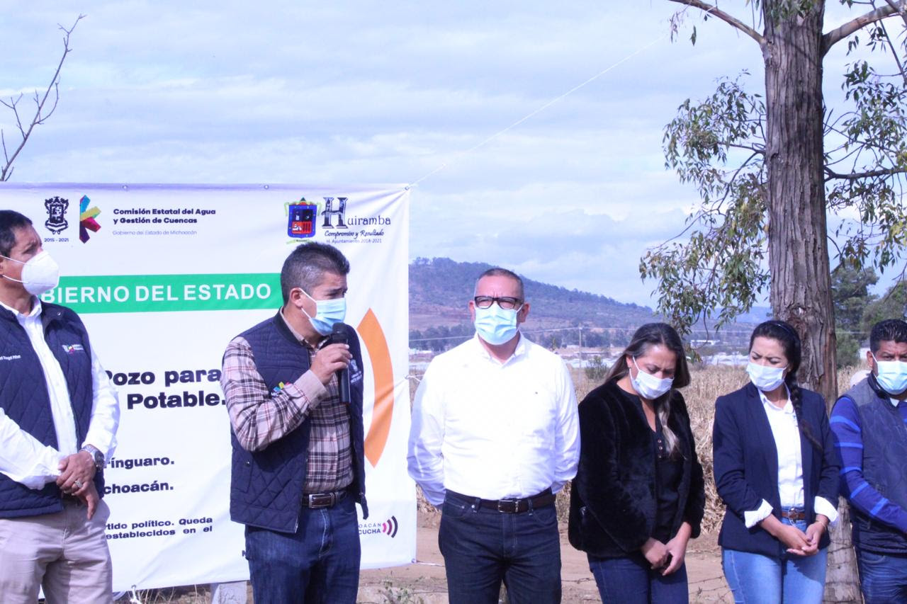 Huiramba, Michoacán, a 7 de diciembre de 2020.- Con el fin de suministrar agua potable a más de 450 personas que habitan la comunidad de San Simón Quirínguaro, el Gobierno de Michoacán arrancó el equipamiento de un pozo profundo, el cual cuenta con una inversión tripartita de 3 millones 394 mil pesos.