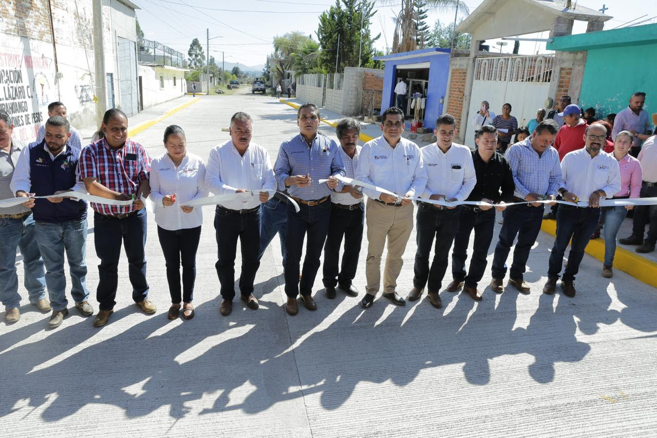Otra de las obras que permitirá reducir la carencia de servicios básicos de los habitantes, es la construcción del drenaje, red de agua potable y pavimento hidráulico de la calle 9, de la colonia Lázaro Cárdenas, en la tenencia de San Miguel Curahuango, que fue entregada este jueves por Aureoles Conejo a la población.