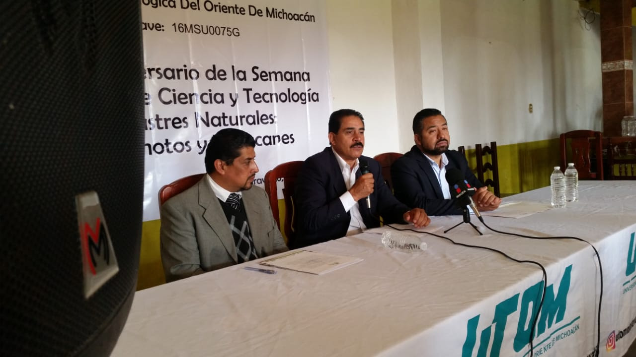 El director general del Instituto de Ciencia, Tecnología e Innovación (ICTI), José Luis Montañez Espinosa; el rector de la Universidad Tecnológica del Oriente de Michoacán, Heriberto Lugo Contreras, y el coordinador del Comité Regional de Ciencia y Tecnología del Oriente, Javier Irepan Hacha, anunciaron que con esta acción, Michoacán se sumará al resto del país en la XXV Semana Nacional de Ciencia y Tecnología, que en esta edición llevará por tema principal “Desastres Naturales: Terremotos y Huracanes”.