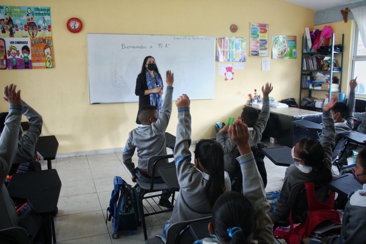 Las y los menores regresaron a clases con todas las medidas de sanidad como el uso de cubrebocas y aplicación de gel antibacterial.