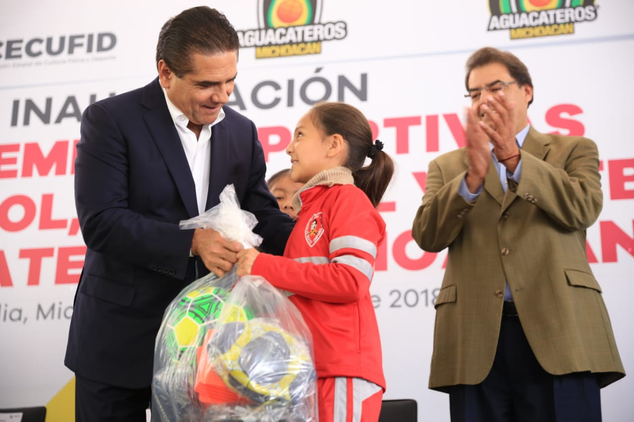 Morelia, Michoacán, a 20 de agosto del 2018.- Con el inicio del ciclo escolar 2018-2019, el Gobernador Constitucional, Silvano Aureoles Conejo, inauguró las Academias Deportivas de básquetbol, fútbol y voleibol Aguacateros Michoacán, en las instalaciones del Centro Deportivo Ejército de la Revolución (CDER).