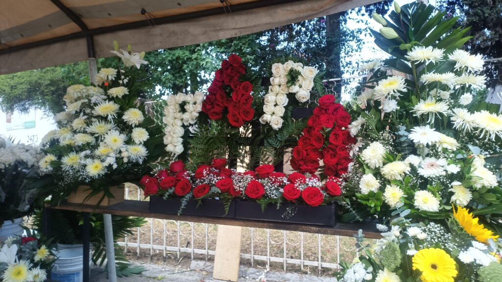Las arreglos florales no pueden faltar en este festejo al interior del campo santo, es por ello que los comerciantes que se encuentran a las afueras del panteón Gayosso en la ciudad de Morelia, ofertan ramos sencillos de flores desde $70 pesos.