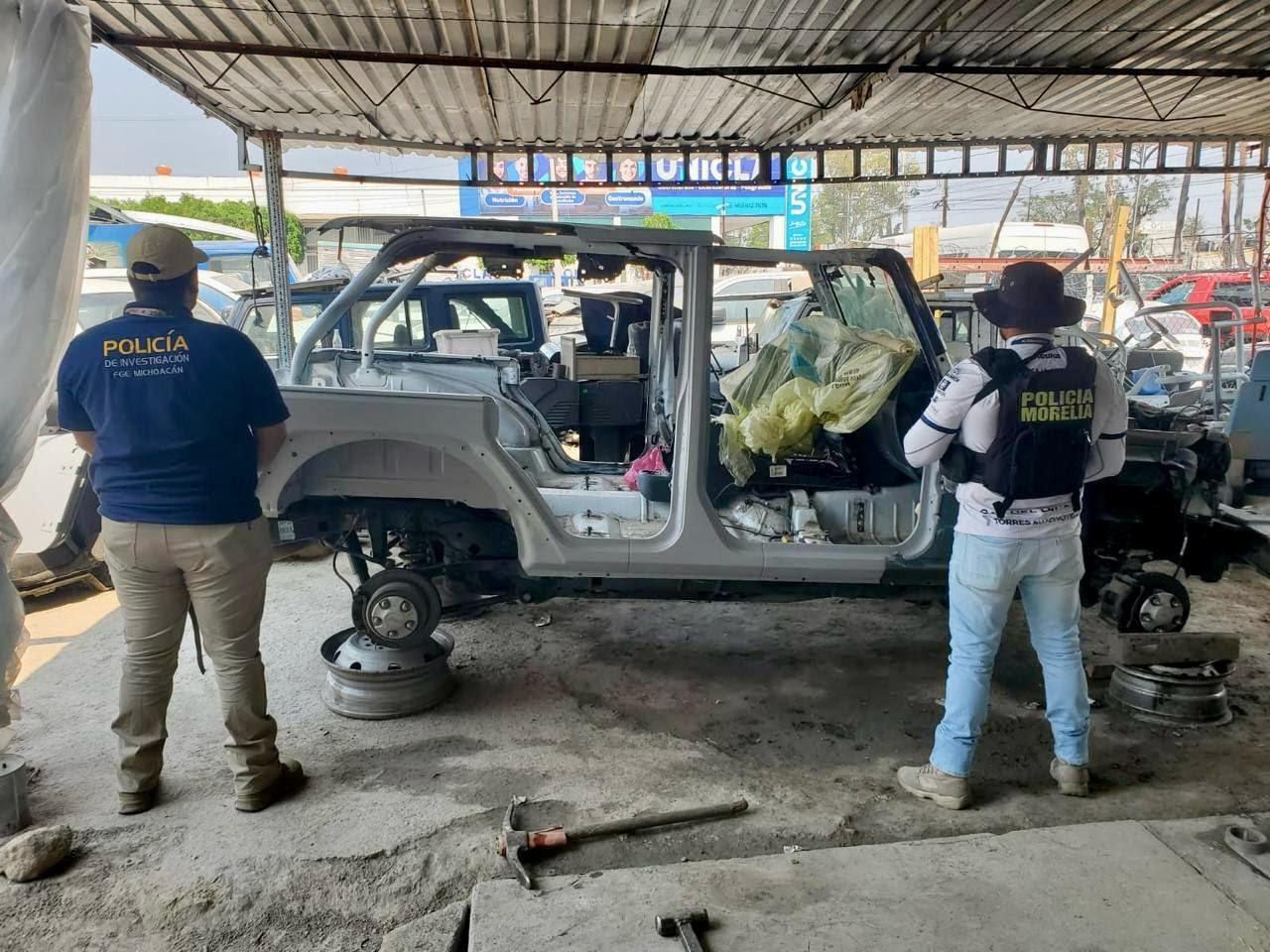 Tras recabar los datos de prueba correspondientes, el Ministerio Público obtuvo la orden de cateo de un Juez de Control, misma que fue ejecutada este viernes. En el lugar, se localizó un vehículo Jeep, el cual contaba con reporte de robo, alteraciones en sus medios de identificación y señales de desvalijamiento.