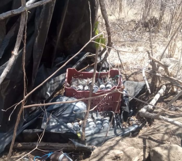 Durante el desarrollo de patrullajes y barridos en zonas de terracería de la localidad de Paredes del Ahogado, los agentes de la Guardia Civil, del Ejército Mexicano y la Guardia Nacional localizaron los mencionados explosivos.