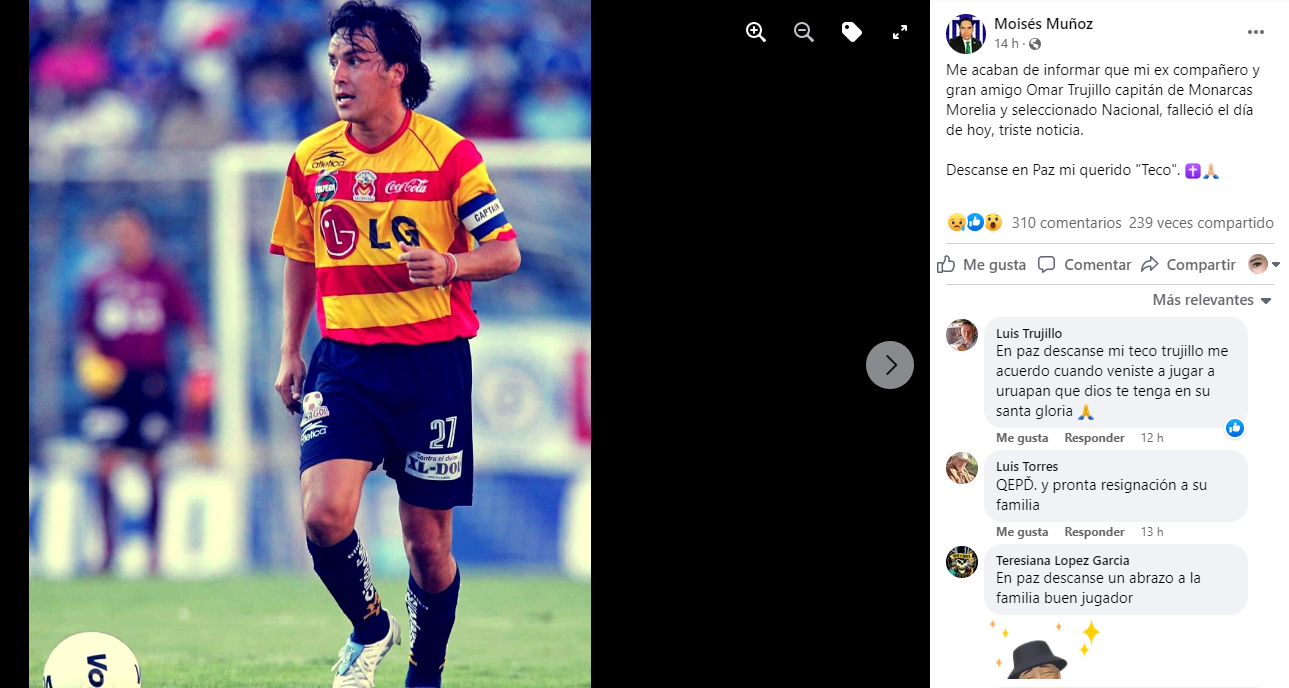 A 02 de diciembre del 2022.- Este jueves Omar Trujillo quien en su momento fue capitán de Monarcas Morelia y también trabajo como regidor en el ayuntamiento de Morelia , falleció a los 44 años de edad en la ciudad de la cantera rosa.