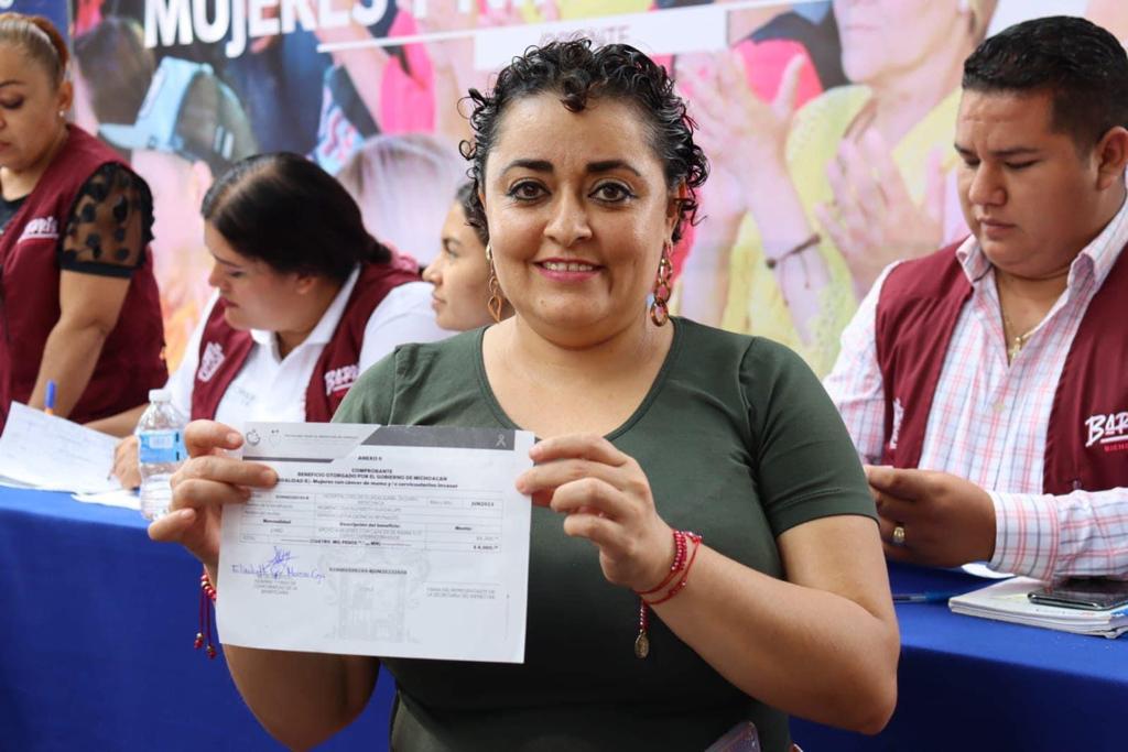 “Hoy, las mujeres de Michoacán reciben un apoyo económico para fortalecer su economía y cuentan con nuestro respaldo para que continúen con su tratamiento y no lo suspendan a causa de la falta de recursos”, señaló Serna Hernández.