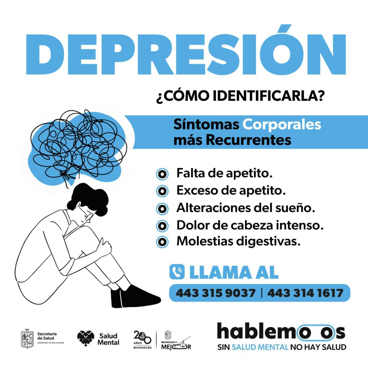 En lo que va del año, la línea Hablemoos ha brindado atención a mil 926 personas que han llamado a pedir ayuda psicológica, en un 13 por ciento a causa de la depresión, que se detecta fácilmente en un paciente que considera que está solo, que nadie le ayuda y que nada tiene solución.