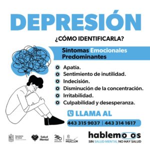 Por ello, la Secretaría de Salud de Michoacán (SSM) invita a la población a detectar a tiempo los signos de alarma y a solicitar atención oportuna a este trastorno de salud mental, que afecta a gran parte de las y los michoacanos, sobre todo en temporada invernal, donde hay menos cantidad de exposición a la luz, provocando que muchos de los pacientes tengan el ánimo bajo por la falta de serotonina.