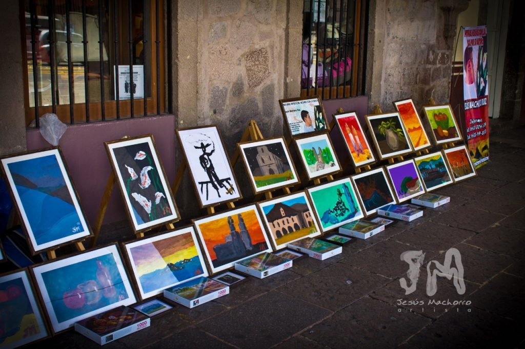 Jesús Machorro artista popular en Morelia inició a pintar con la boca en el año 1996, de trayectoria tiene más de 60 exposiciones individuales y colectivas, normalmente podíamos encontrar sus obras en los portales Frente a catedral con venta al público.