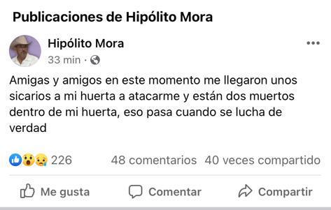 «Amigas y amigos en este momento me llegaron unos sicarios a mi huerta a atacarme y están dos muertos dentro de mi huerta, eso pasa cuando se lucha de verdad», posteó Hipólito Mora.
