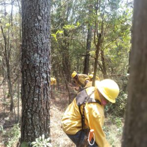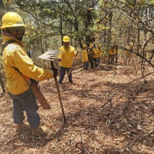 En tierra, participan tres brigadas de la Comisión Forestal del Estado (Cofom), personal de la Comisión Nacional Forestal (Conafor), así como brigadas de los ayuntamientos de Salvador Escalante y Pátzcuaro, con el respaldo de 30 voluntarios.