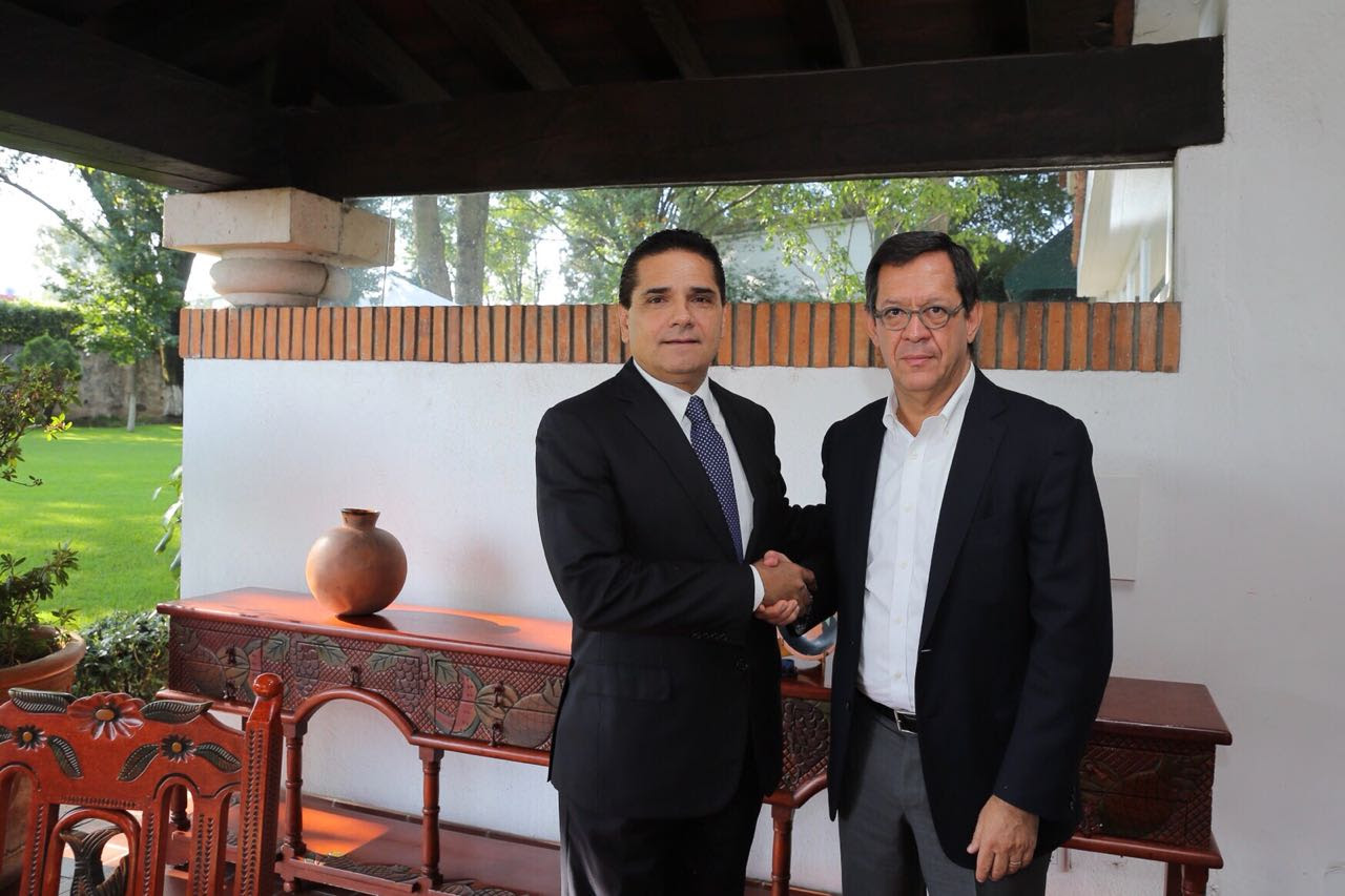 Morelia, Michoacán, a 9 de agosto de 2018.- El Gobernador del Estado, Silvano Aureoles Conejo, se reunió esta mañana con el secretario del Trabajo y Previsión Social, Roberto Campa Cifrián, con quien dialogó en torno a los apoyos que ha recibido Michoacán a través de diversos programas para impulsar el empleo formal en la entidad.