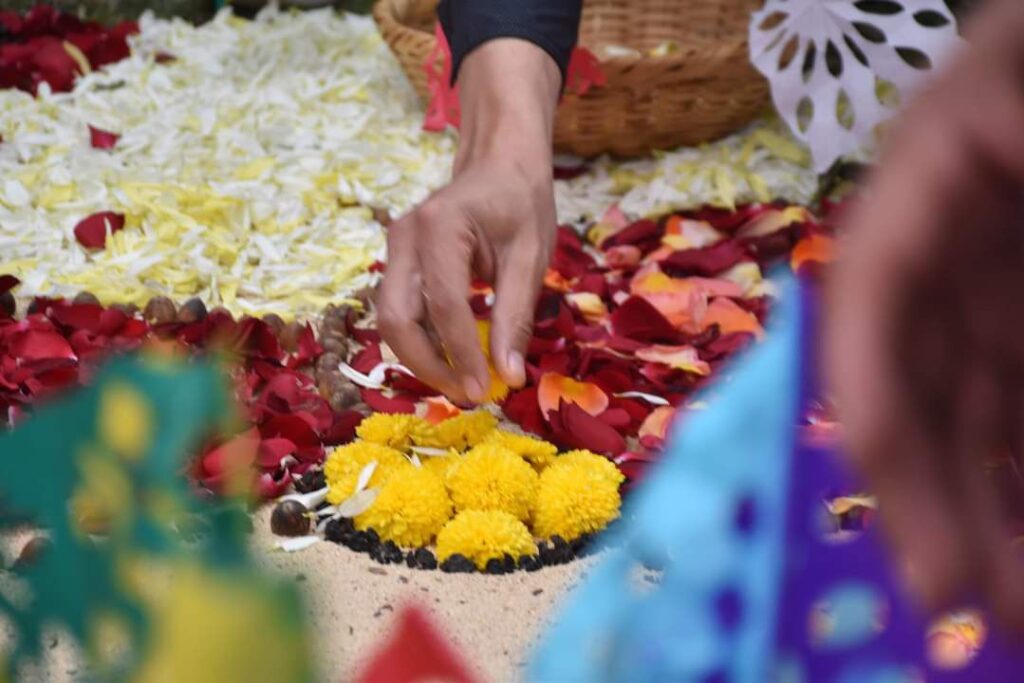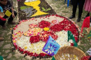 Por la tradicional elaboración de tapetes florales para la fiesta de Cristo Rey