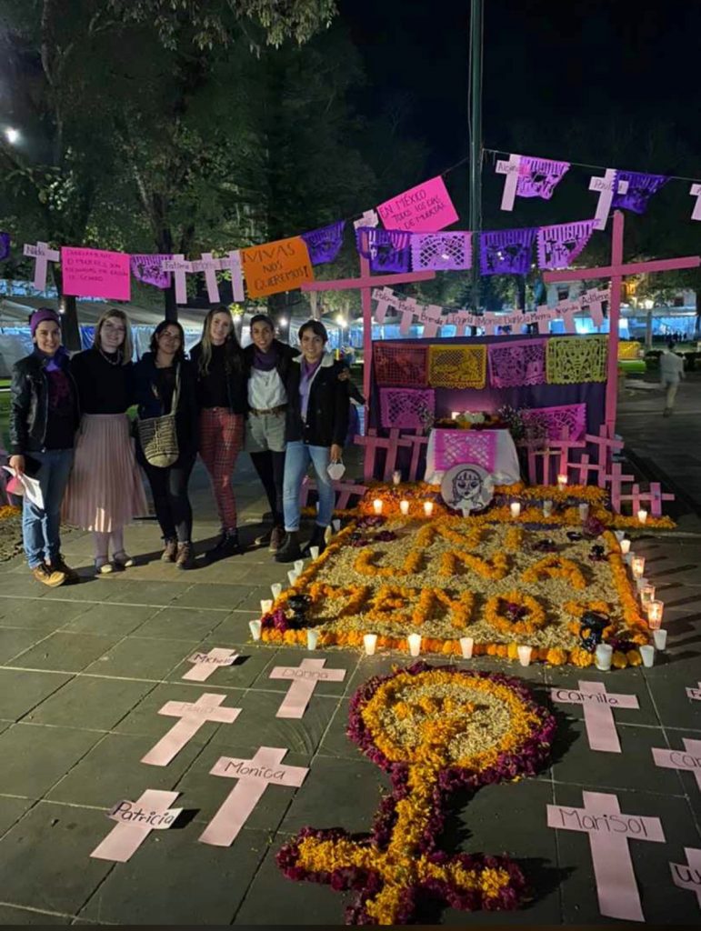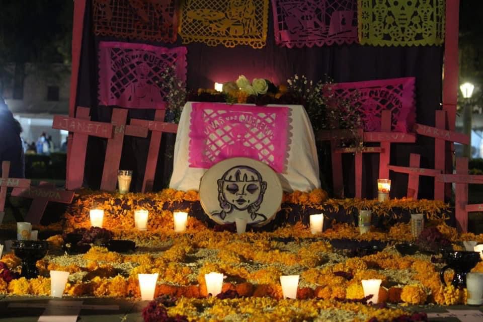 Horas más tarde colectivos feministas también realizaron un evento para recordar a las mujeres víctimas de feminicidios y pedir a las autoridades justicia para ellas, con un altar en la plaza Vasco de Quiroga las colectivas ITSI e HYDRAS decidieron colocar cruces de color rosa con nombres de mujeres que perdieron la vida en manos de un feminicida.