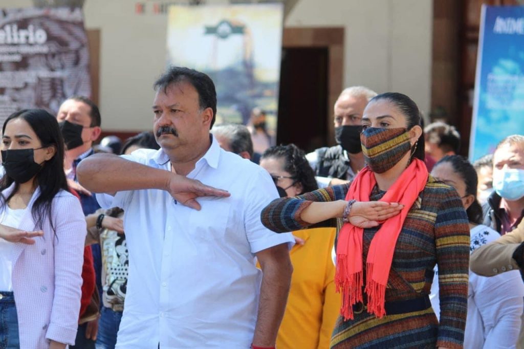 Pátzcuaro, Michoacán a 04 de noviembre del 2021.- El día de ayer el ayuntamiento de Pátzcuaro, encabezado por el alcalde Julio Alberto Arreola Vázquez realizó un acto conmemorativo por el Día de Luto Estatal y Conmemoración por las Mujeres Víctimas de Feminicidios, mismo que se efectúo a fuera de Palacio de Gobierno, lugar donde se izó la bandera de México a media hasta en memoria de las que ya no están.