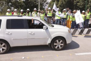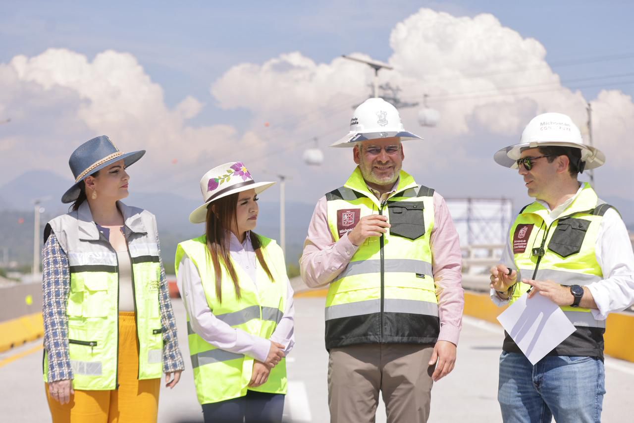 Uruapan, Michoacán, 8 de febrero de 2026.- El gobernador Alfredo Ramírez Bedolla aperturó a la circulación cuatro carriles superiores del puente elevado “Paso La Hielera”; infraestructura que en 45 días será inaugurada y que contempla un parque lineal con jardineras, skatepark, gimnasio al aire libre y bancas, entre otros.