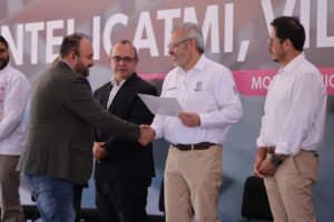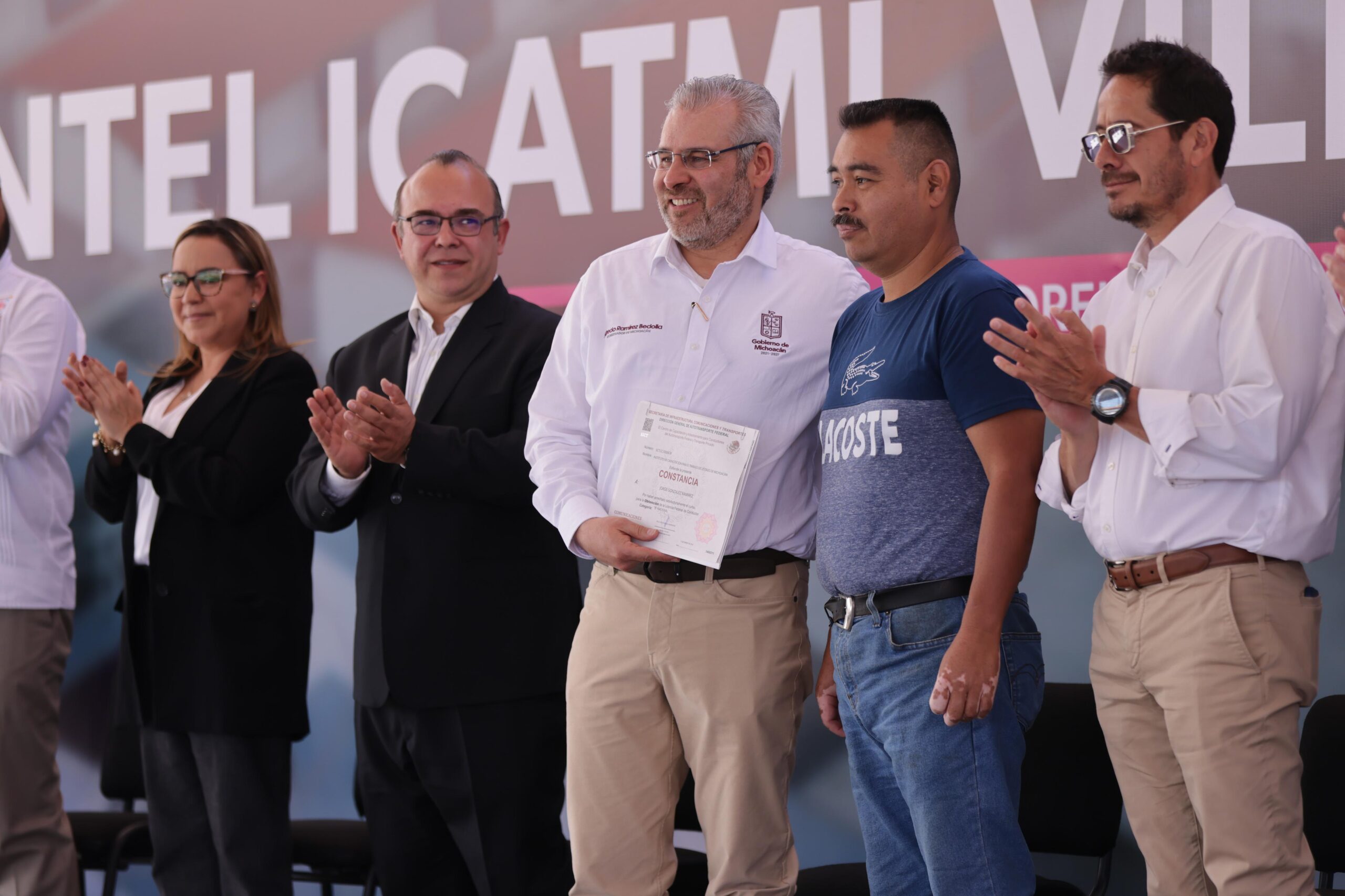 En este marco el gobernador y la directora del Icatmi entregaron tres reconocimientos a estudiantes de la primera generación del Centro de Capacitación para Conductores de Autotransporte de Carga Federal (Cetransporta), para obtener las licencias de conducir tipo B y C.