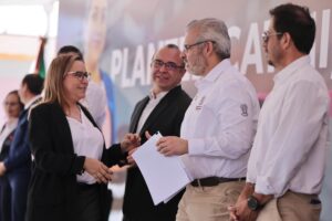 Acompañaron al gobernador al acto por el primer aniversario del plantel los titulares de las secretarías de Desarrollo Económico, Claudio Méndez Fernández; de Educación, Gabriela Molina Aguilar; y del Bienestar, Andrea Serna Hernández; así como el coordinador de Organismos Descentralizados Estatales de Instituciones de Capacitación para el Trabajo DGCFT, Miguel Ángel Abadía Pardo.