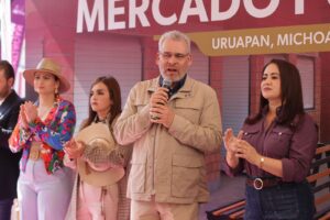 Uruapan, Michoacán, 28 de noviembre de 2025.– El gobernador Alfredo Ramírez Bedolla y la presidenta municipal de Uruapan, Grecia Quiroz García, inauguraron el nuevo Mercado Poniente y su cruce seguro, una obra estratégica que complementará la estación 6 del teleférico y que representó una inversión total de 16 millones de pesos.