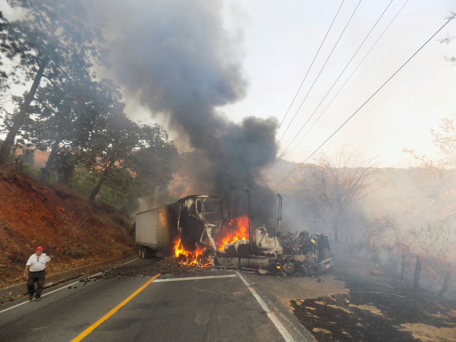 Los agentes policiales se trasladaron al tramo carretero Apatzingán – Buenavista para retirar dos vehículos que fueron incendiados, uno perteneciente a una empresa comercial de la marca Freigthlinder y una camioneta Nissan, línea Caja Seca; de inmediato se aseguró la zona para evitar afectaciones a civiles.