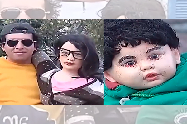Pues resulta que su esposa es nada mas y nada menos que una muñeca de trapo, y asegura que esta muy enamorado de ella incluso que mantiene diversas conversaciones, pero eso no es todo ya que también formo una familia teniendo hijos del mismo material.