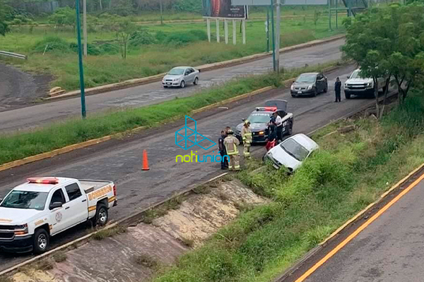 Se informó que la dama perdió el control de su automóvil y después cayó a la cuneta de desagüe, esto ocasionó que las puertas quedarán atascadas.