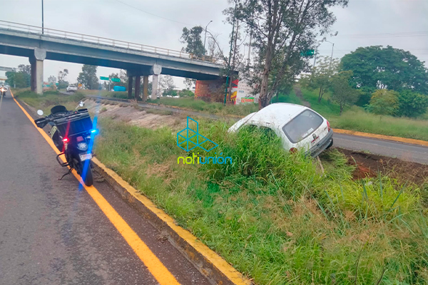 MORELIA MICH., 2 de agosto del 2022.- Personal de la dirección de Tránsito y Movilidad con la ayuda de bomberos, rescataron a una mujer que quedó atrapada dentro de su carro con el cual cayó a una cuneta en el libramiento norte de Morelia.