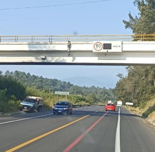 SALVADOR ESCALANTE, MICH., 2 de noviembre del 2022 .- Un bulto en forma de un cuerpo humano colgado en un puente sobre la autopista Siglo XXI, movilizó a las autoridades locales este martes a la carretera Uruapan – Pátzcuaro.