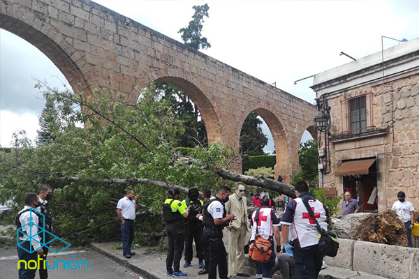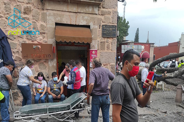 Morelia, Michoacán a 22 de julio del 2021.- La tarde de este jueves se presentó un fuerte viento en el centro histórico de la ciudad de Morelia, el cual logró provocar la caída de un árbol a las afueras de una zona restaurantera cerca de las Tarascas.