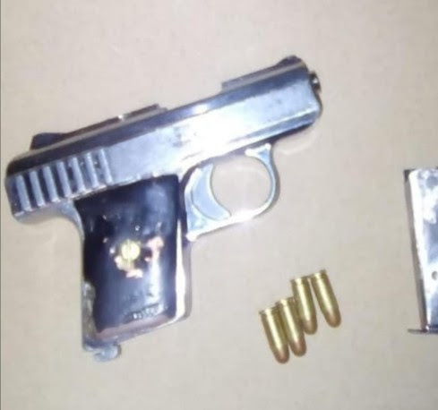 Durante la revisión de pertenencias de los tripulantes, les fue encontrada una pistola sin número de serie, calibre .25mm con un cargador abastecido de cuatro municiones.