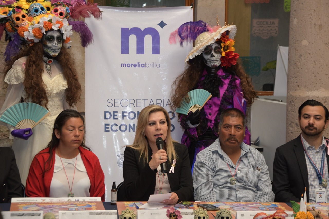 Morelia, Michoacán; a 17 de octubre del 2022.- En el marco de las celebraciones por el Día de Muertos y con el objetivo de preservar las tradiciones de las tenencias de Morelia, del 22 de octubre al 6 de noviembre, se llevará a cabo la «Décimo Segunda Edición de la Feria Nacional, Artesanal y Cultural de la Catrina de Capula«, así lo dio a conocer en rueda de prensa, la secretaria de Fomento Económico, Guadalupe Herrera Calderón.