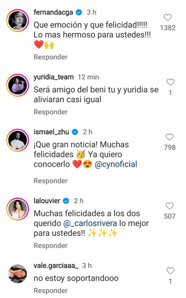 Por supuesto que las felicitaciones de amigos famosos he internautas no se hicieron esperar y entre ellos Ana Barbara, Yuridia, Dulce María, Carlos Vives entre otros.