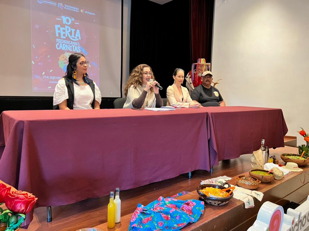 Morelia, Michoacán, 17 de noviembre de 2023.- Las carnitas se han convertido en un legado gastronómico que nos ha dado identidad a nivel nacional e internacional, destacó Rosalba Oregel Cárdenas, directora de Turismo Inclusivo y Sustentable de la Secretaría de Turismo (Sectur), al anunciar la décima edición de la Feria Michoacana de las Carnitas, que se realizará en Tacámbaro del 24 al 26 de noviembre.