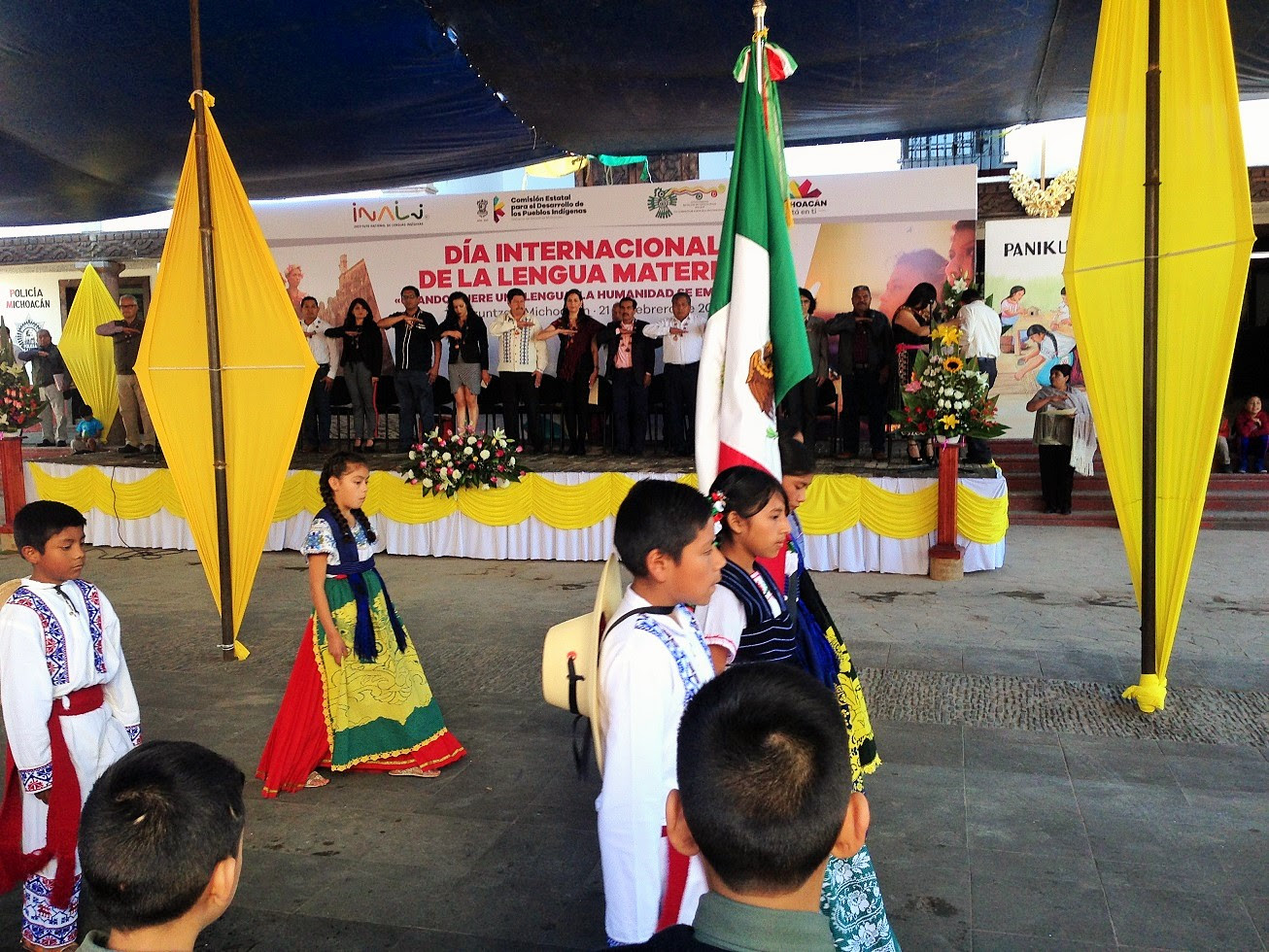 Durante el evento conmemorativo hubo danzas ceremoniales, pirekuas, música de orquesta y poemas, además de la presencia de estudiantes de educación básica y superior.