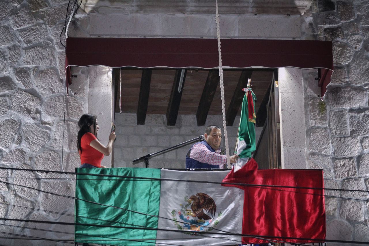 En punto de las las 10 de la noche, el Presidente Municipal, Bladimir González, salió al balcón del Palacio Municipal para realizar la tradicional arenga y celebrarlo con fuegos pirotécnicos que llenaron de luz la plaza de Tarímbaro.