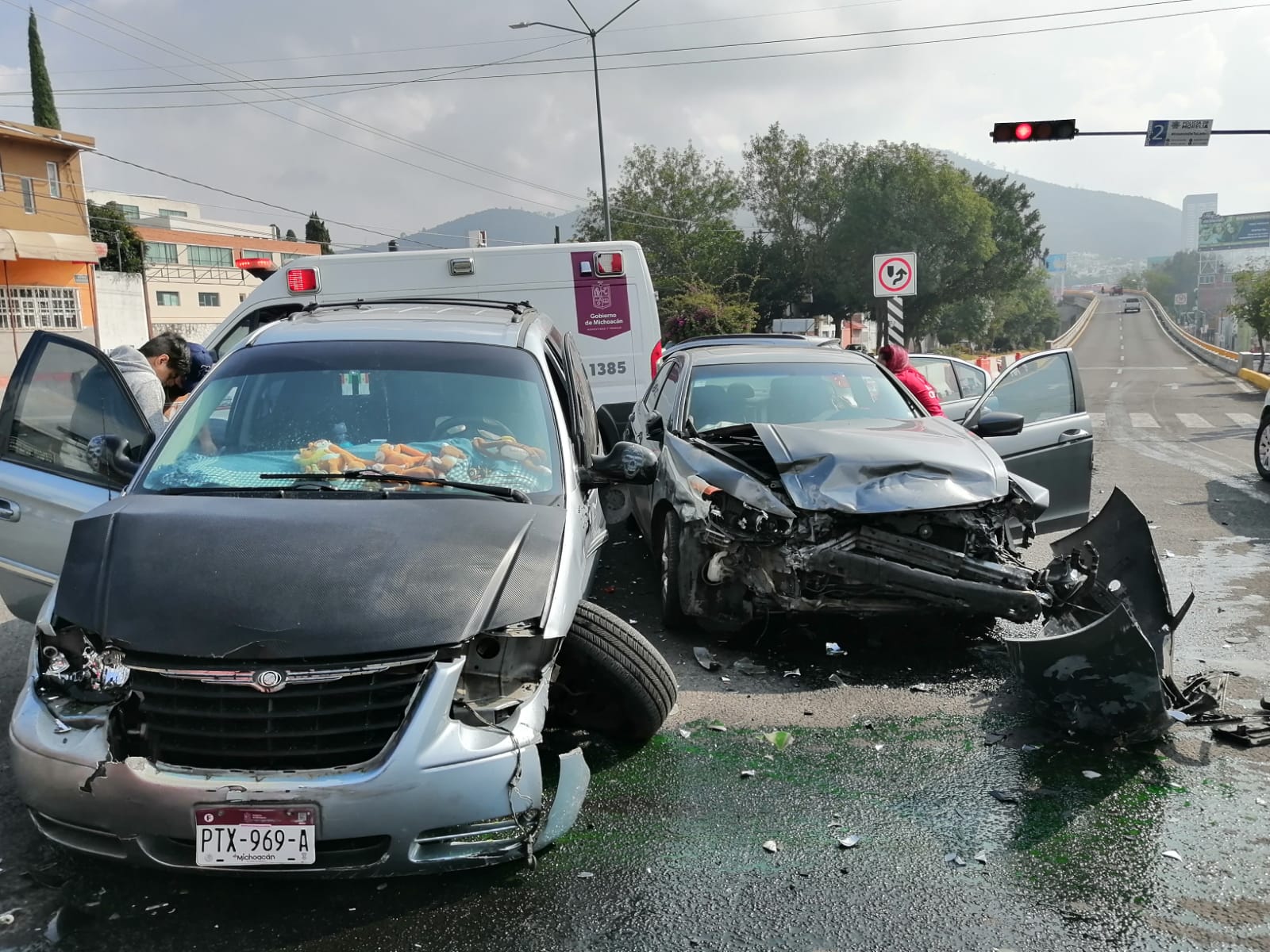 MORELIA MICH., 31 de octubre del 2022.- Pérdidas materiales por varios miles de pesos fue el resultado de un choque automovilístico registrado la mañana de este lunes en la avenida Acueducto, en uno de los accesos al puñete elevado del distribuidos vial de la saluda a Mil Cumbres.