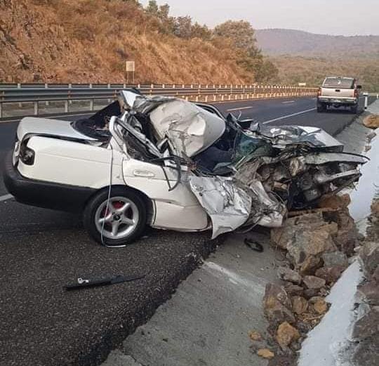 El accidente ocurrió en el kilómetro 55 de la carretera, cuando el carro marca Nissan tipo Tsuru quedó completamente destrozado del frente tras impactarse contra el camión, el cual se dio a la fuga.