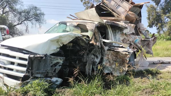 El conductor de la camioneta logró salvarse de lesiones al cambiarse rápidamente al asiento del copiloto momentos antes del choque, pero su vehículo quedó completamente destrozado.