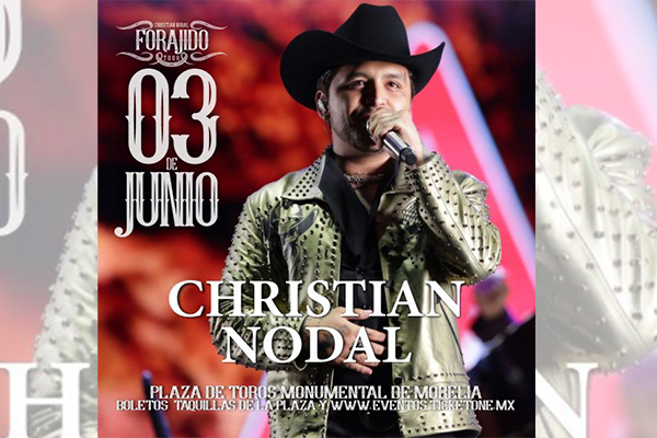 Morelia., Michoacán., a 02 de junio del 2022.- Este viernes 3 de junio se presentará en la ciudad de Morelia el cantautor Christian Nodal con «Forajido Tour», la cita es en La Plaza de Toros Monumental.